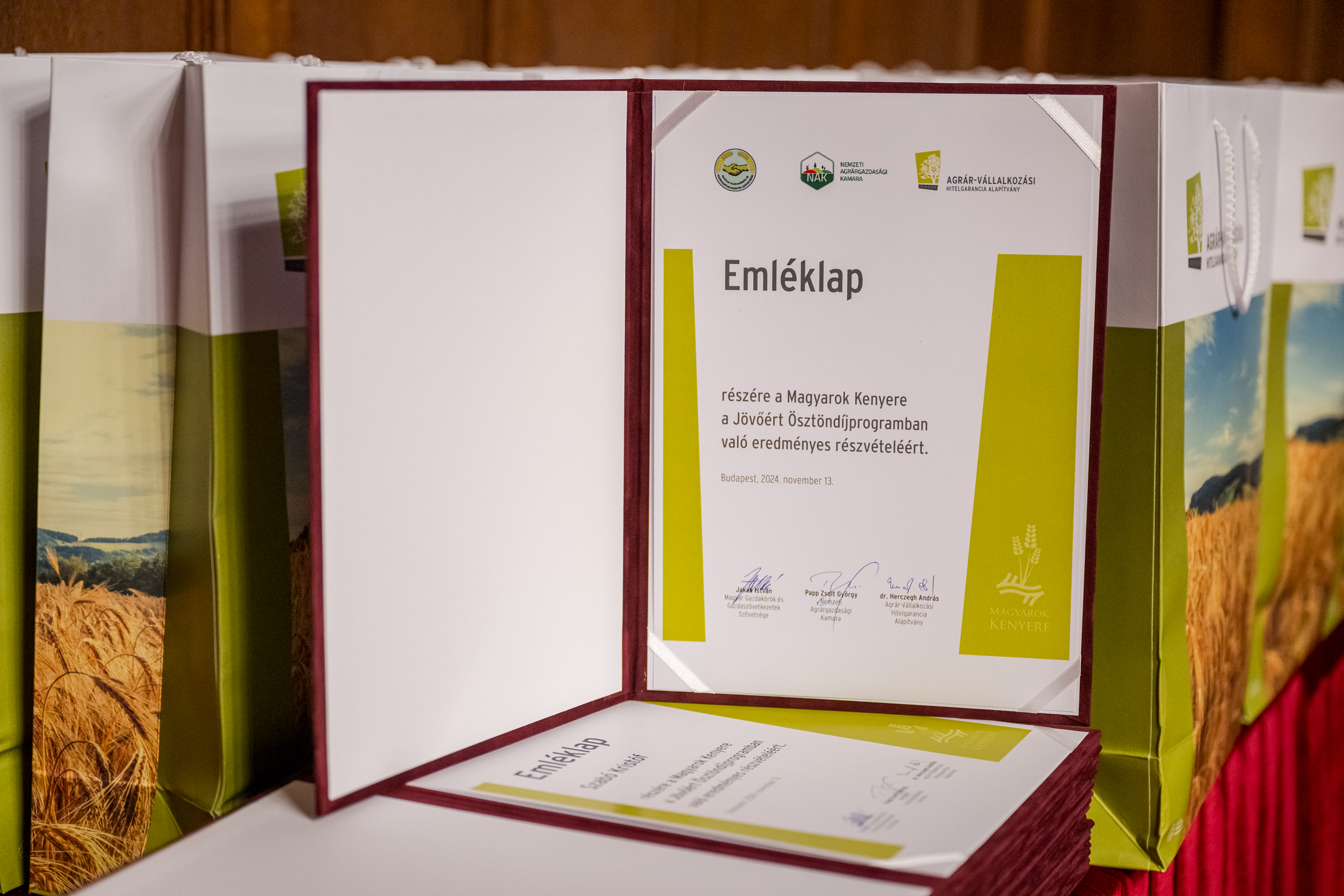 Вдруге було оголошено стипендіальну програму „Хліб угорців для майбутнього” для молодих людей, які працюють в аграрному секторі Карпатського басейну. Цього року на стипендію можуть претендувати вдвічі більше учасників, ніж минулого року, а саме 25 молодих людей, які отримають річну стипендію, яку вони можуть витратити на навчання, професійний розвиток або на покращення проектів у сфері сталого сільського господарства. Стипендії були урочисто вручені 13 листопада 2024 року в Будинку націй у Парламенті.